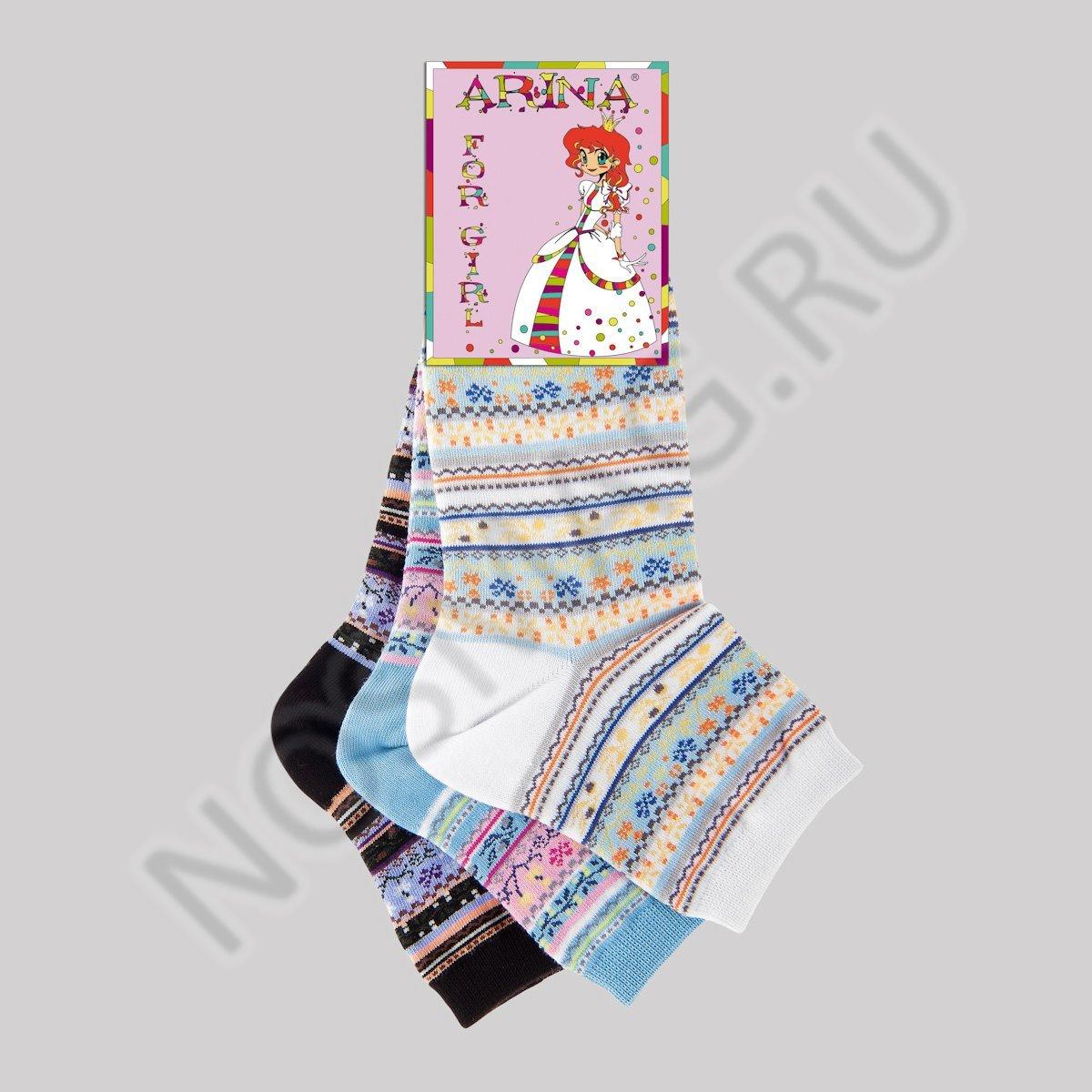 Удобные и стильные трикотажные носки для девочек с принтом, имитирующим жаккардовый узор. Пятка, носок и удобная мягкая резинка носков - однотонные.