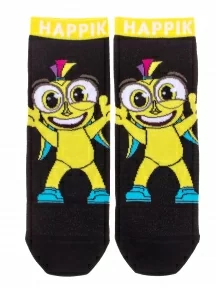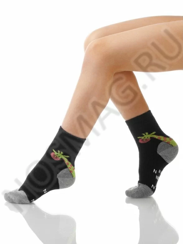 Яркие детские носки с забавным принтом в виде жирафа. Они также украшены контрастными деталями и надписями на подошве. Носки сделаны из высококачественного трикотажа.