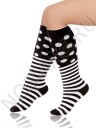 Невероятно стильные высокие гольфы, отличающиеся сочетанием модных принтов: полоской и крупным горошком. Эта оригинальная модель позволит создать головокружительно стильный и запоминающийся образ!
