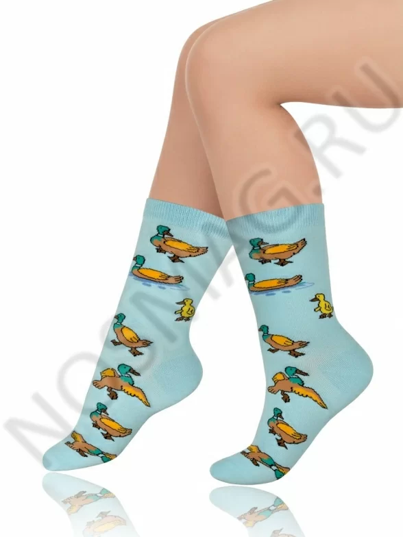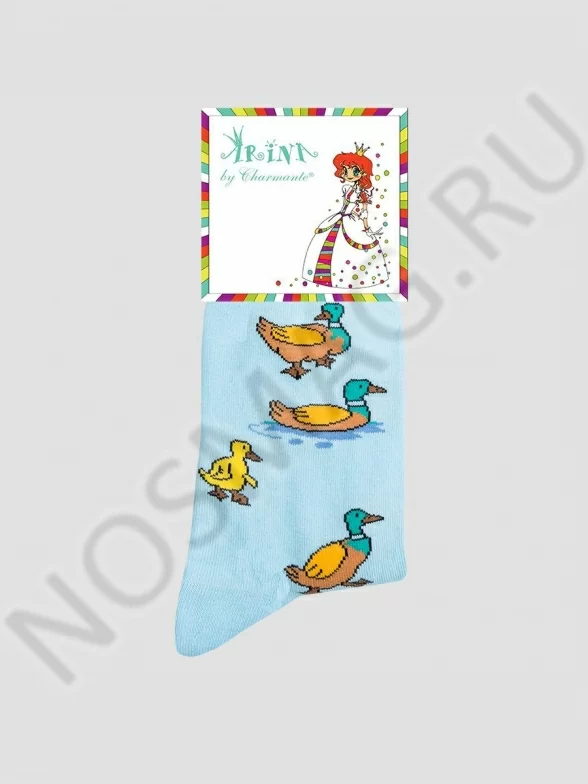 Яркие носки для девочек. Модель стандартной длины. Принт с утятами отлично смотрится на голубом однотонном фоне. Удобные мягкие манжеты носков не передавливают кожу.