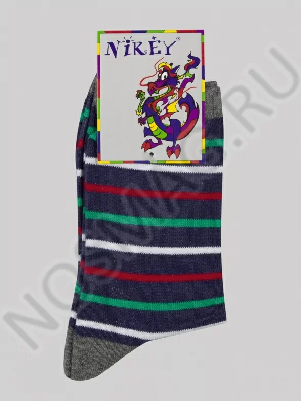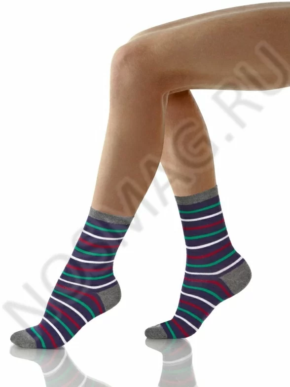 Модные носки для мальчиков, украшенные узором в тонкую полоску разных цветов. Носок, пятка и манжеты модели выполнены в меланжевой расцветке.