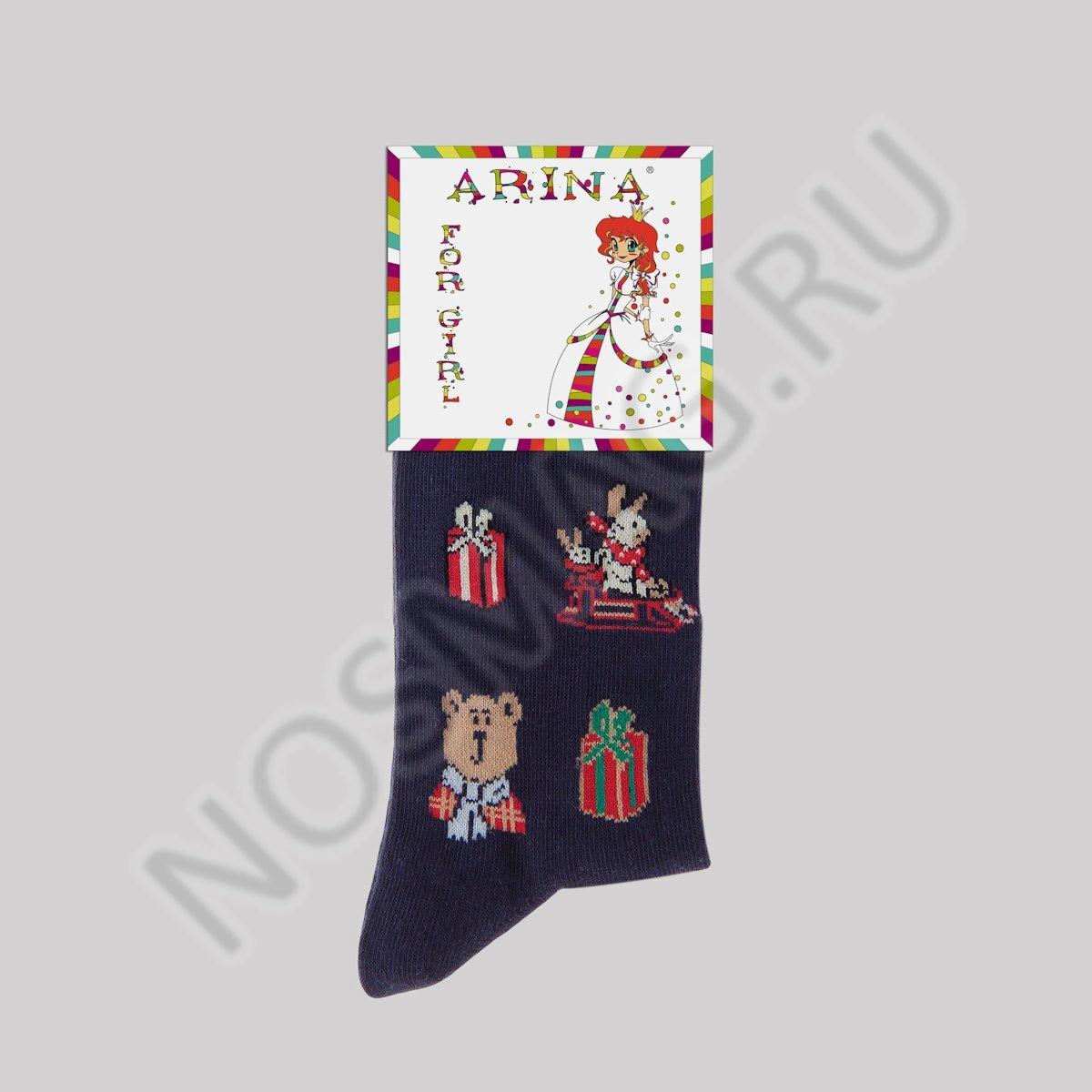 Стильные носки классической длины для девочек. Модель украшена принтом в рождественском стиле с игрушками и подарками. Мягкая и плотная резинка носков не передавливает кожу.