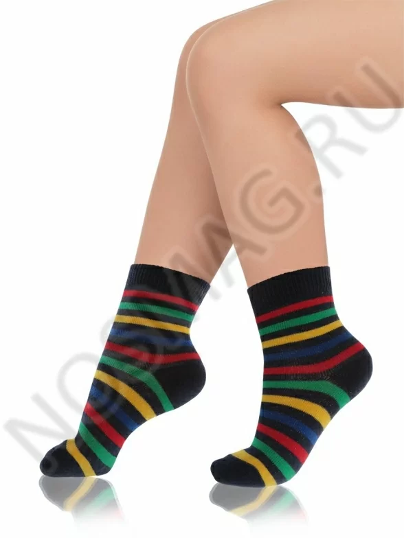 Стильные носки для мальчиков, сделанные из высококачественного трикотажа. Они декорированы яркими разноцветными полосками и выглядят очень стильно.