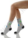 Носки в меланжевой расцветке с принтом, изображающими разноцветные автомобили. Носок и пятка выполнены в тёмном однотонном цвете.