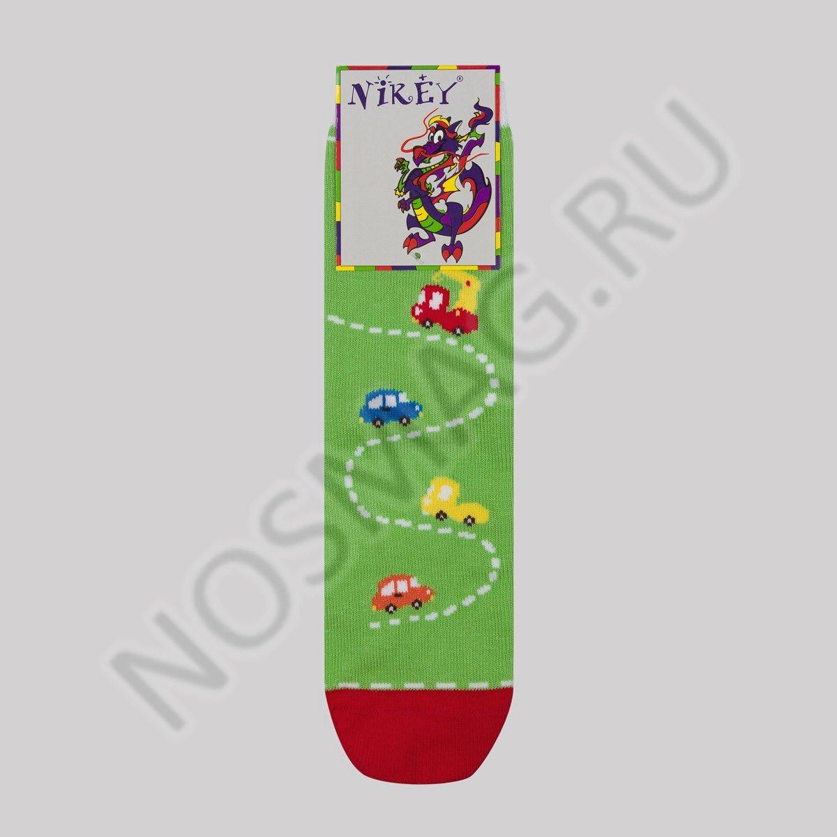 Очень оригинальные носки для мальчиков, украшенные принтом с автомобилями и дорогой. Яркий салатовый фон отлично подчёркивает принт.