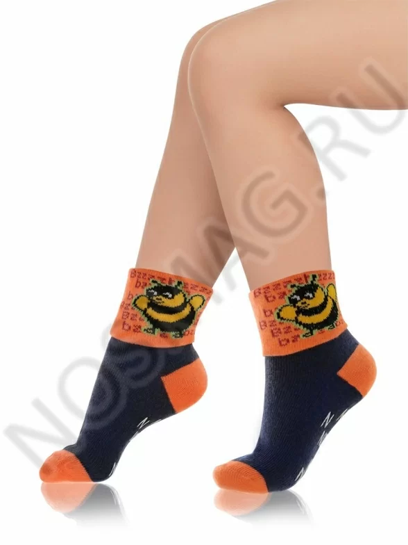 Стильные носки для девочек, украшенные принтом с пчёлкой и контрастными пяткой, носком, а также манжетами. Модель отлично подходит для дома - носки обеспечивают высокий уровень комфорта и обладают отличной износостойкостью.