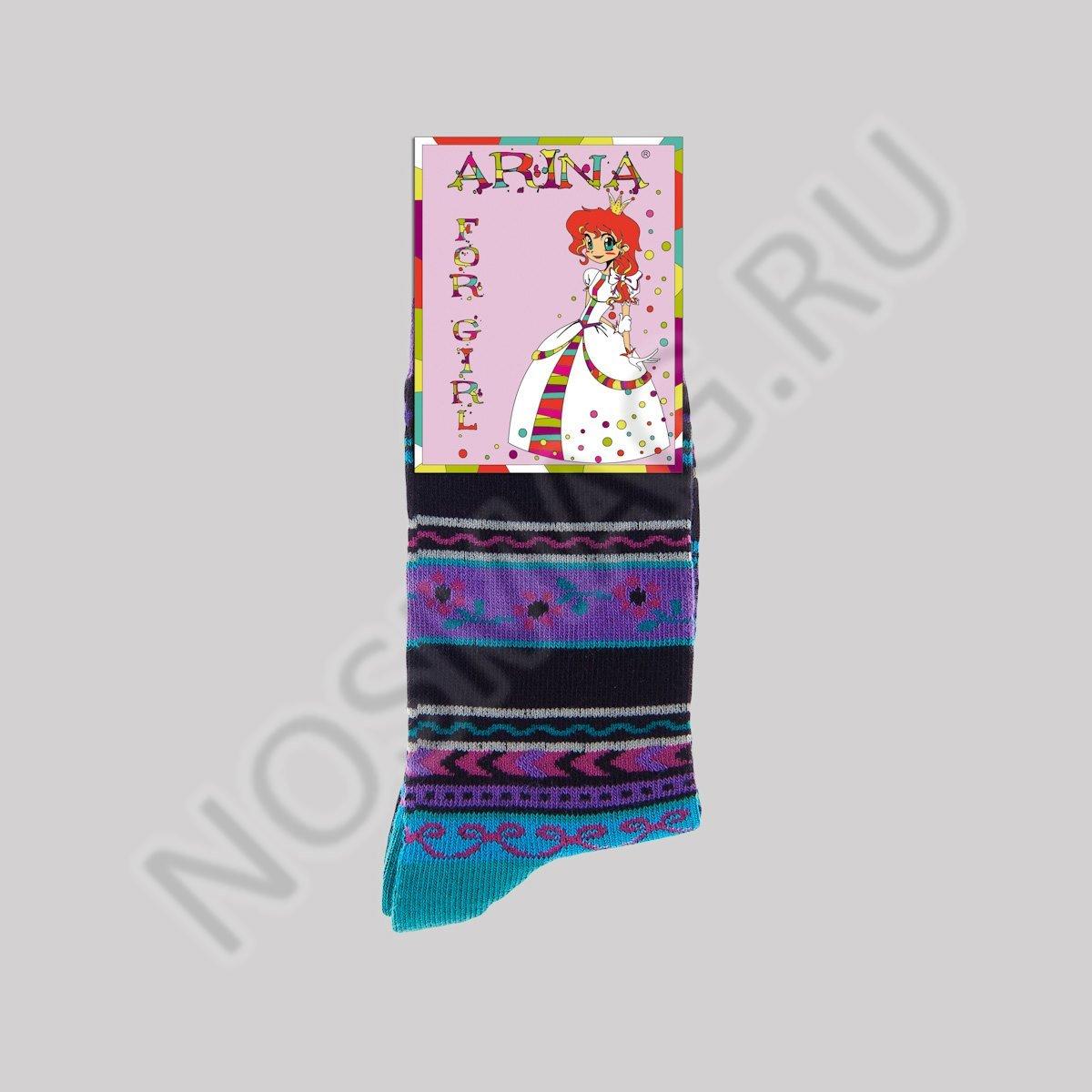 Яркие носочки для девочек, украшенные женственным орнаментом, а также разноцветными полосками. Трикотажные манжеты не передавливают кожу.