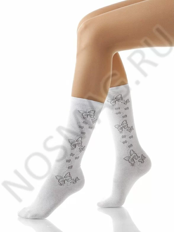 Трикотажные гольфы для девочек, украшенные разноцветным принтом с бабочками. Такой узор делает данную модель очень красивой и необычной.