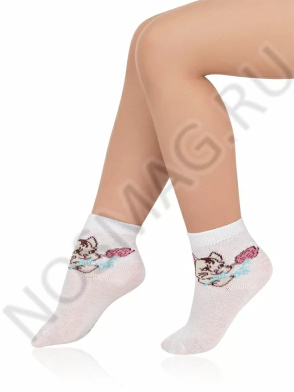 Удобные носки стандартной длины для девочек. Модель украшена изображениями забавных милых котиков, которые точно понравятся обладательнице таких носочков!