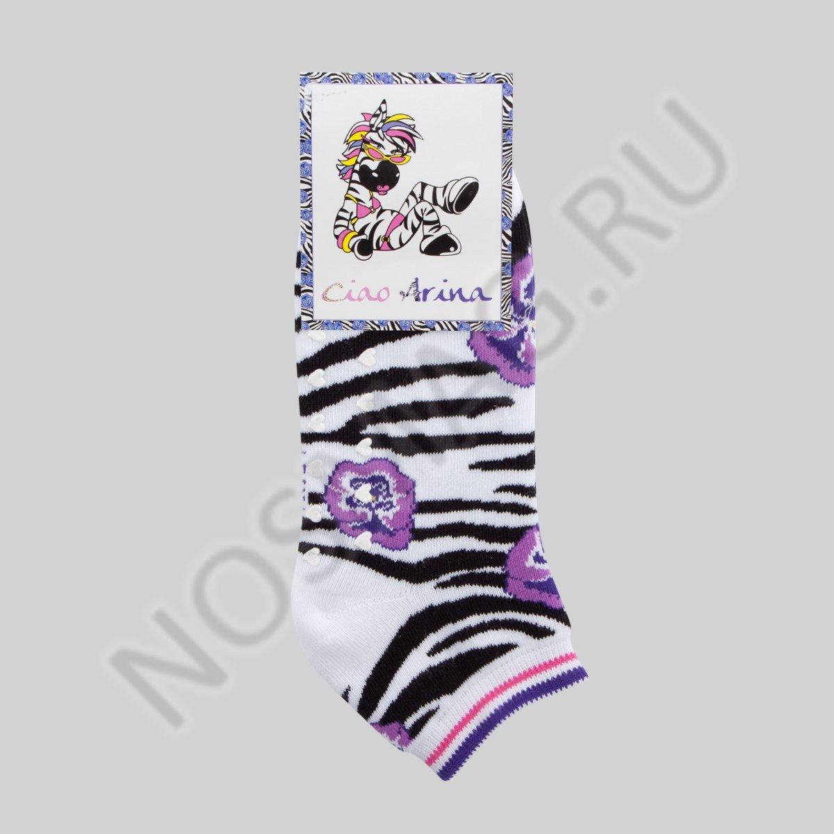 Невероятно стильные носочки укороченного фасона для девочек. Они украшены принтом, имитирующим окрас зебры, в сочетании с флористическими мотивами. Манжеты носков декорированы акцентирующими полосками.