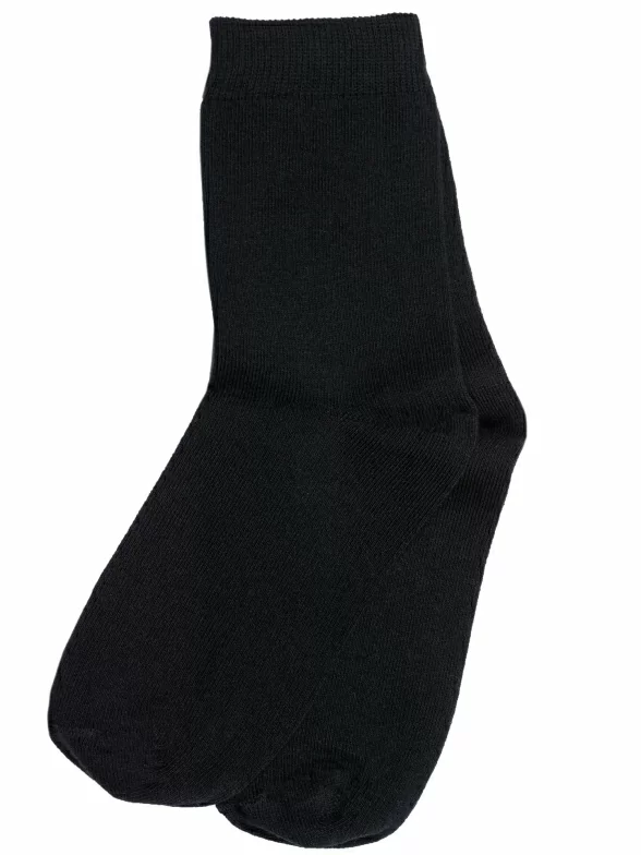 Однотонные гладкие носки для детей черного цвета. Состоят на 88% из хлопка, а входящие в состав полиамид и эластан делают их более прочными, износостойкими и хорошо тянущимися. Материал мягкий и дышащий. В этих носках детям будет комфортно на протяжении всего дня.