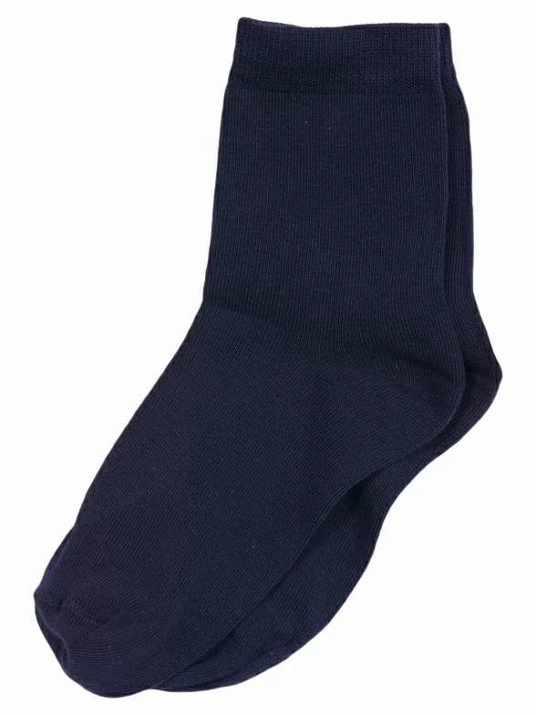 Однотонные гладкие носки для детей темно-синего цвета. Состоят на 88% из хлопка, а входящие в состав полиамид и эластан делают их более прочными, износостойкими и хорошо тянущимися. Материал мягкий и дышащий. В этих носках детям будет комфортно на протяжении всего дня.