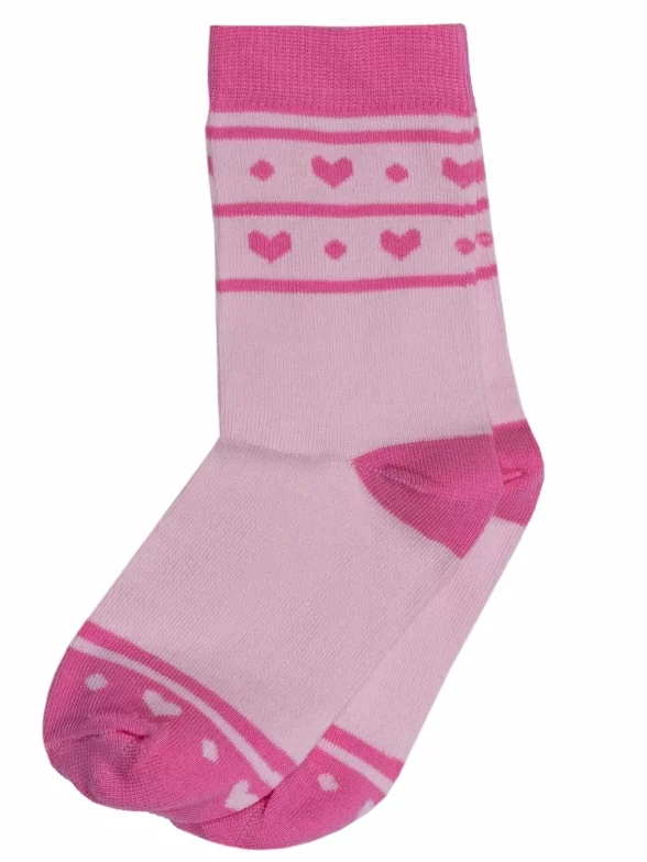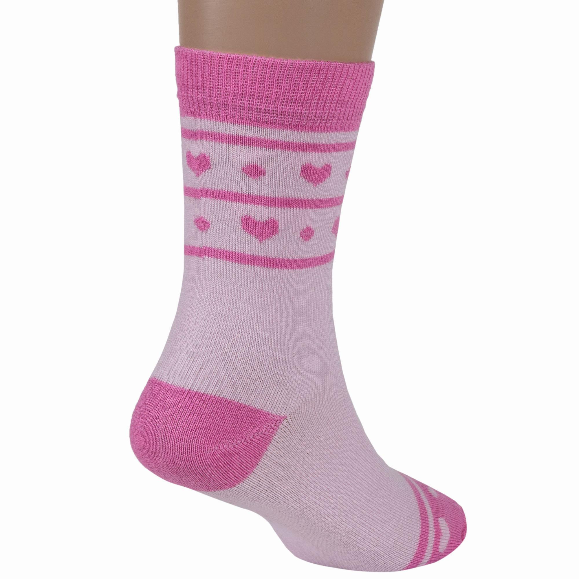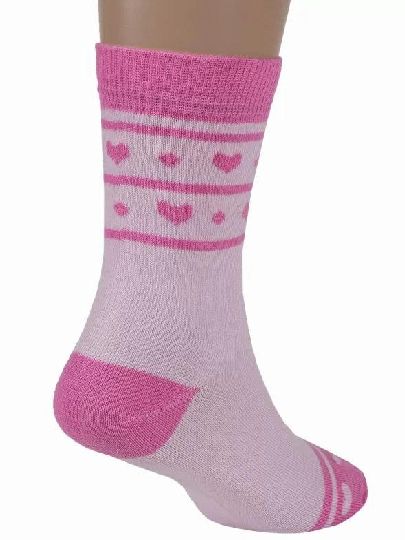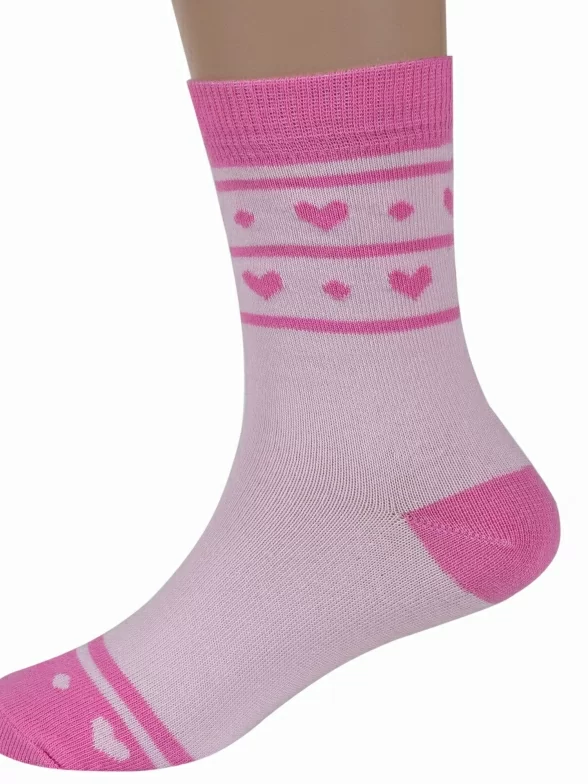 Светло розовые носки для девочек с узором из сердечек и полосок.