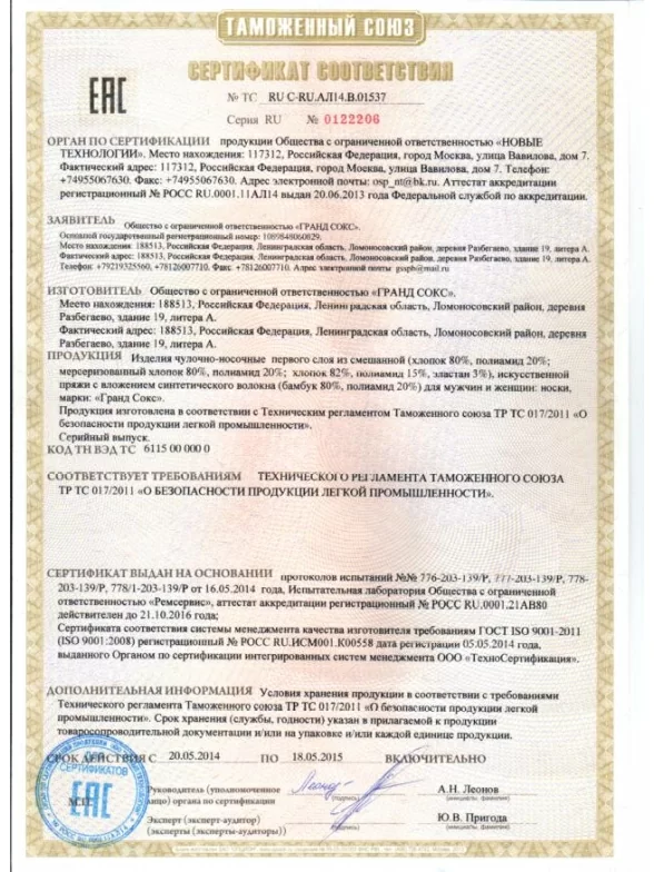 - Изготовитель набора носковИП Вахрушев В.А., Россия