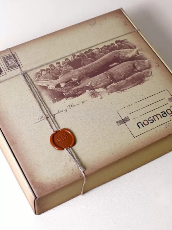 Дизайн упаковки в стиле Российского почтового отправления начала XX века. На фото рыбаки с уловом из Волги, 1924 год. Впечатляет.