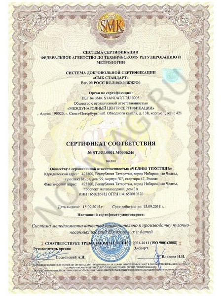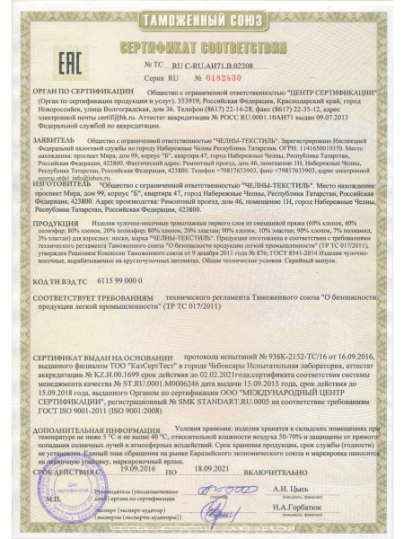 - Производитель носковфабрика «Челны Текстиль», г. Набережные Челны, Россия