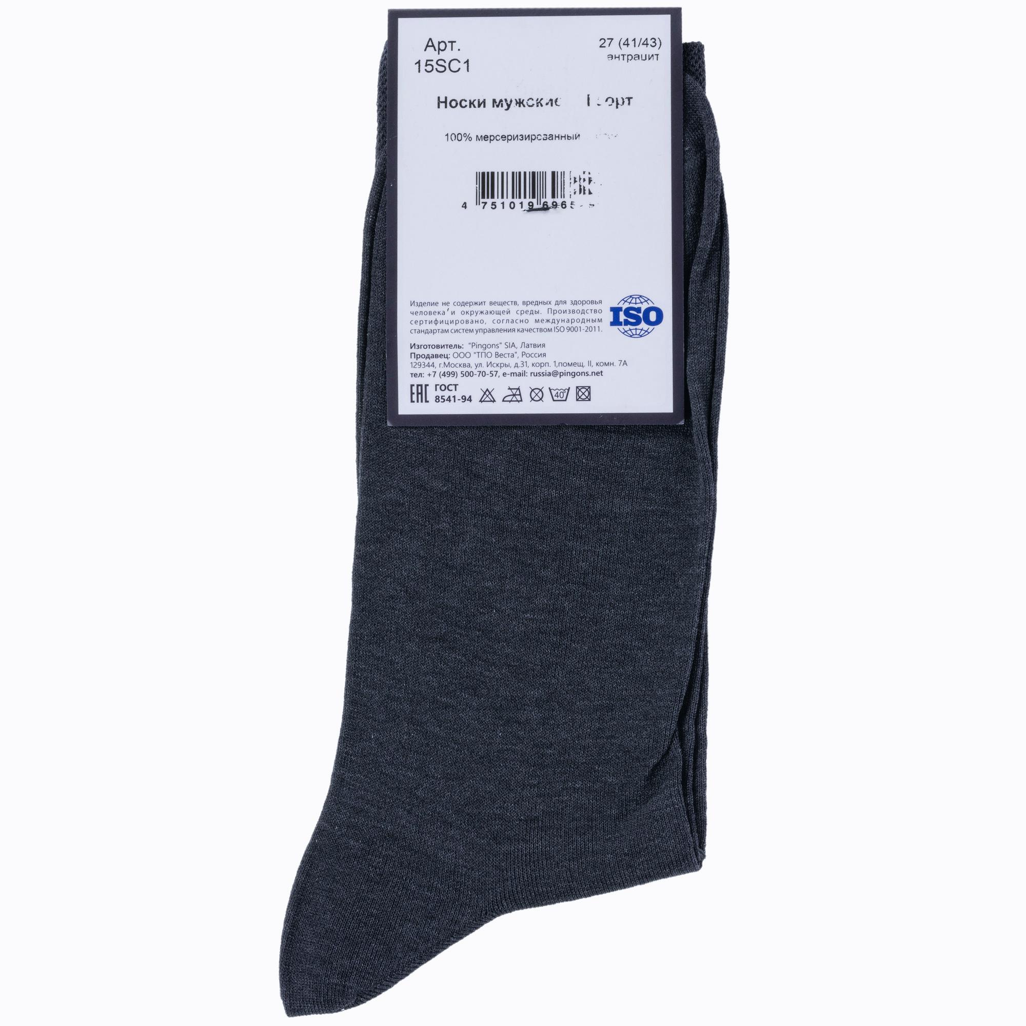 Пара носков цвета антрацит артикула 15SC1 с фабричной этикеткой поставляется в прозрачном пакете с дополнительной транспортной упаковкой.