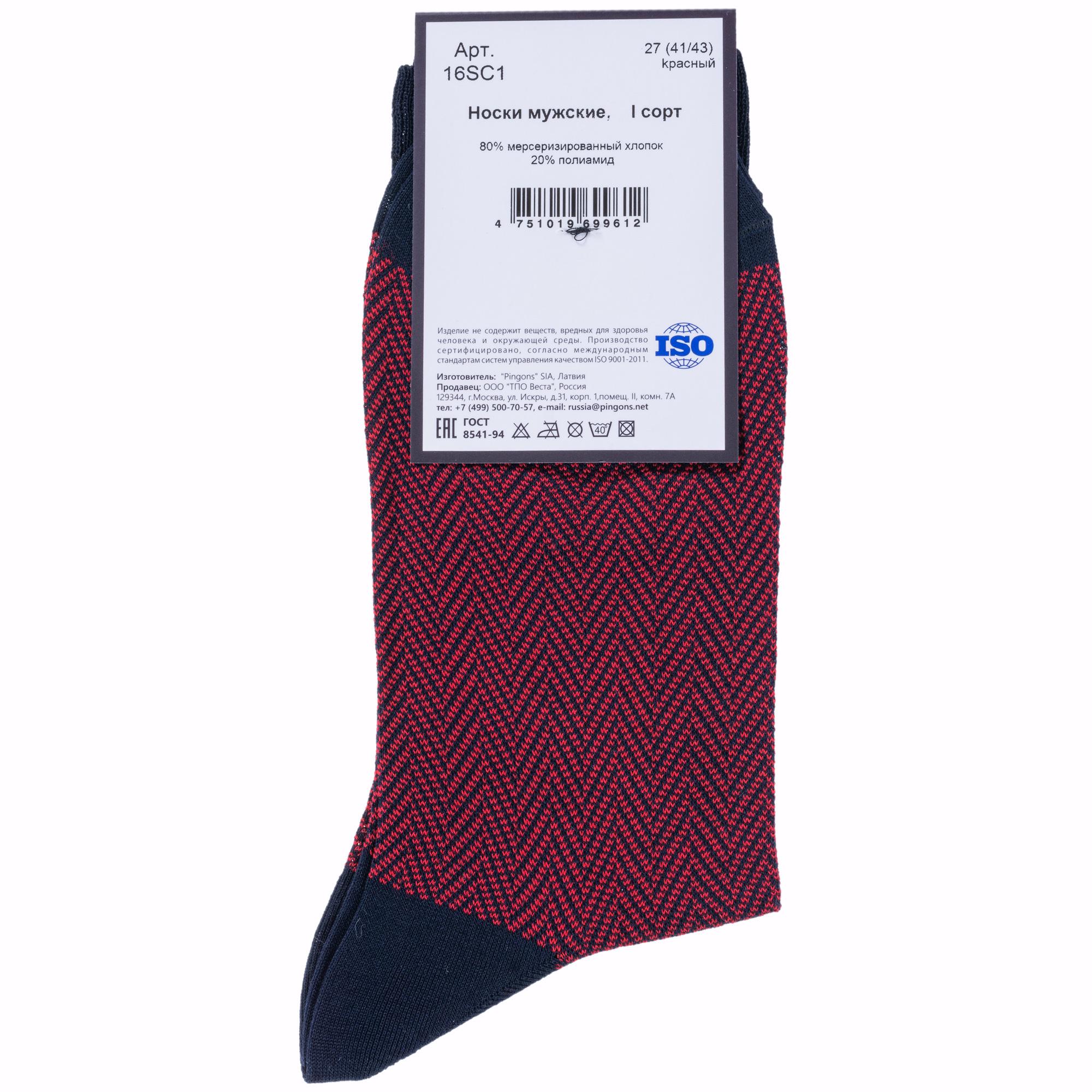 Пара красных носков артикула 16SC1 с фабричной этикеткой поставляется в прозрачном пакете с дополнительной транспортной упаковкой.