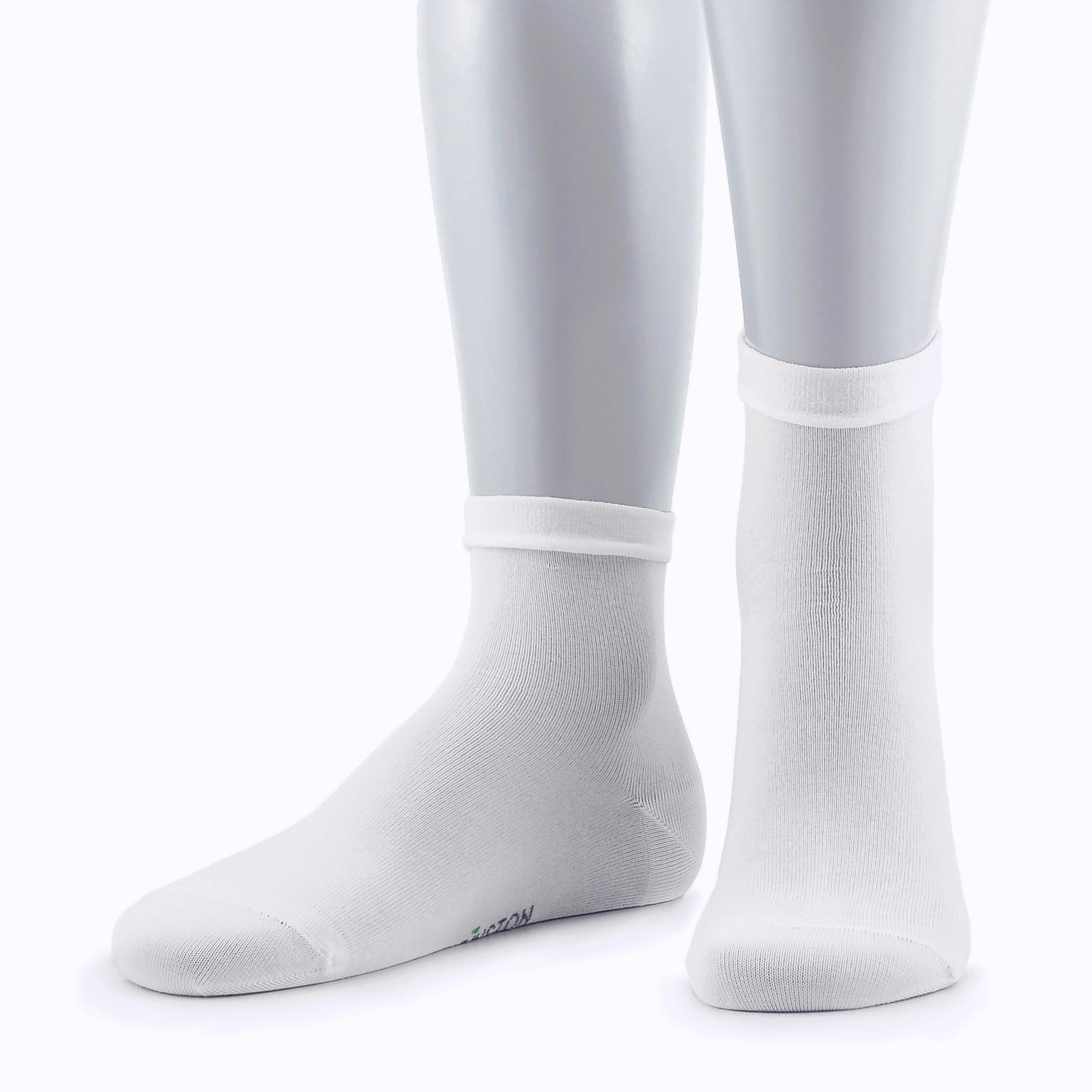 Укороченная модель с плоским малоощутимым швом на мыске и без резинки, благодаря чему носки не пережимают ногу и не нарушают кровообращение; можно носить с подворотом как короткие.