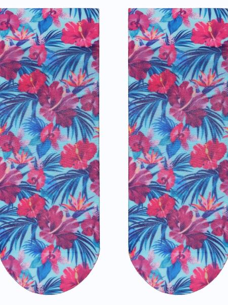 Стильные хлопковые носки с эффектным рисунком в виде контрастных роз. Носки имеют двойной борт, усиленные мысок и пятку, а все швы - плоские.