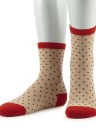 Очень стильные носки с рисунком в горошек. Они отличаются контрастными мыском, пяткой и резинкой, при этом, мысок и пятка усилены для лучшей износостойкости. Борт носков - двойной, а плоские швы обеспечивают дополнительный комфорт.