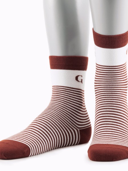 Короткая модель с двойным бортом (манжетом резинки) и плоским малоощутимым швом на мыске; оформлена принтом в полоску.