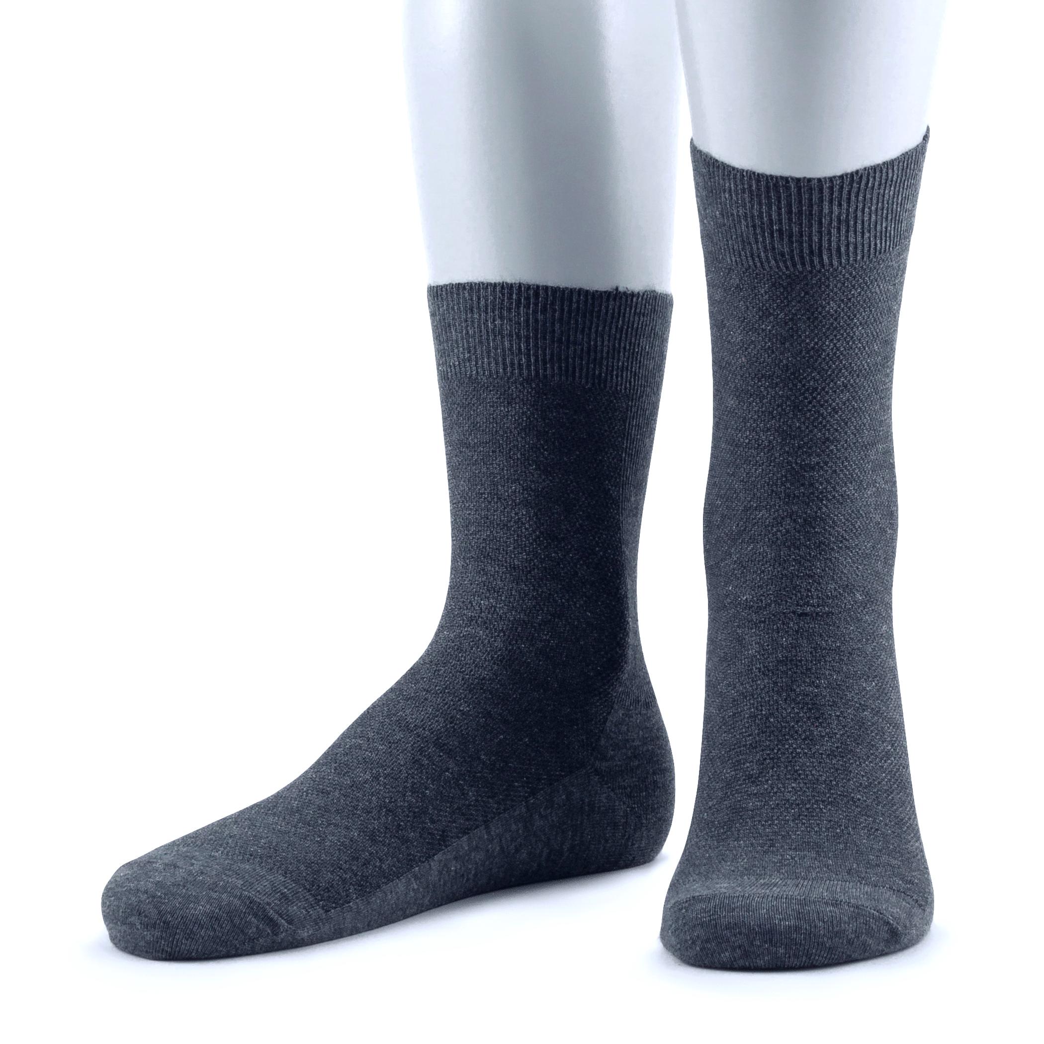 Однотонная модель средней длины с плоским малоощутимым швом на мыске и без резинки, благодаря чему носки не пережимают ногу и не нарушают кровообращение. Задняя часть паголенка связана в мелкий рубчик, что обеспечивает надежную фиксацию носка на ноге, а передняя часть, начиная с подъема стопы, имеет сеточную вставку жаккардового плетения, улучшая воздухообмен.
