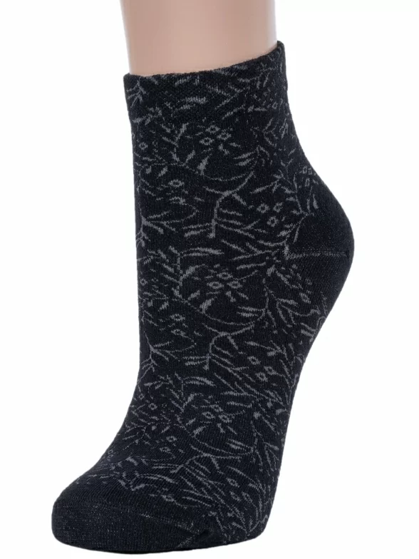 Стильные женские носочки слегка укороченного фасона. Модель отличается удобными мягкими манжетами и декорирована изысканным ненавязчивым узором.