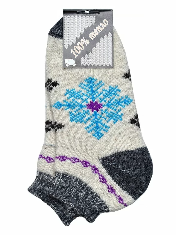 Высококачественные шерстяные носки для женщин, украшенные красивым узором в зимней тематике. Носки очень тёплые и удобные. Модель укороченной длины.
