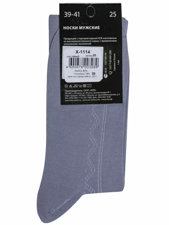 Пара носков серого цвета артикула X-1114 поставляется с фабричной этикеткой в обычном или курьер-пакете.