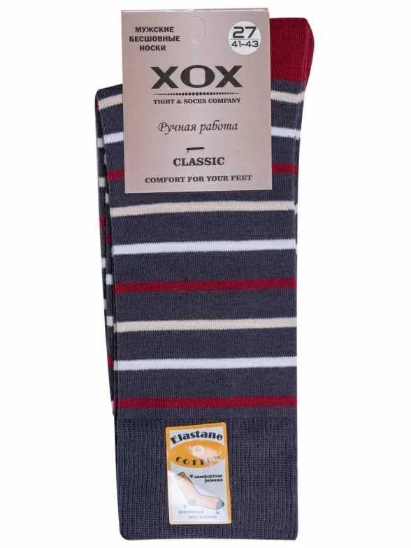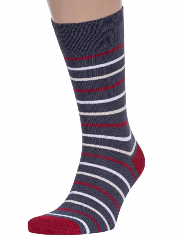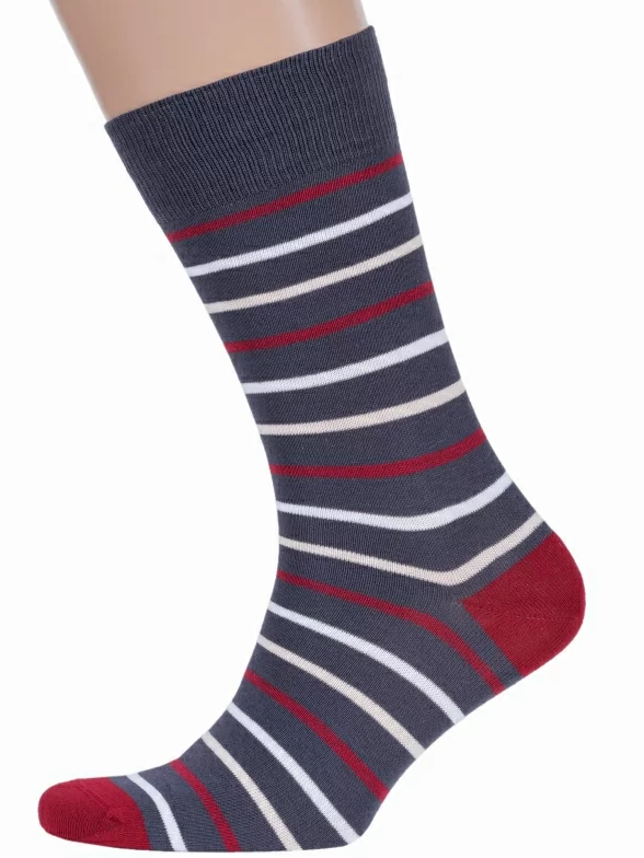Удобные мужские носки классической длины, выполненные в стиле Casual. Они украшены полосками разной ширины. Мысок и пятка - контрастные. Отличительная особенность модели - широкие манжеты, которые не передавливают кожу (что важно для тех, кто проводит в обуви большую часть дня) и обеспечивают высокий уровень комфорта!