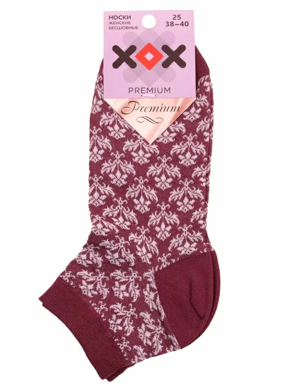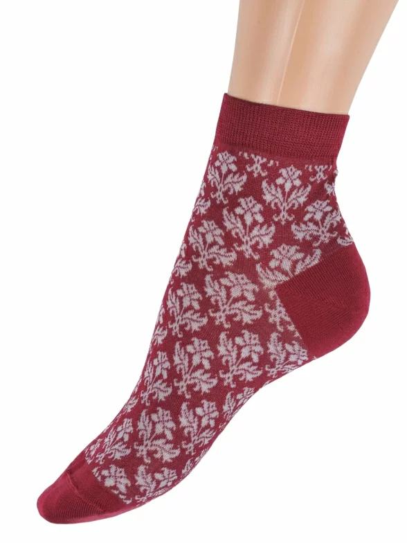Женские носки из мерсеризованного хлопка ХОХ, GM-1402, БОРДОВО-БЕЛЫЕ