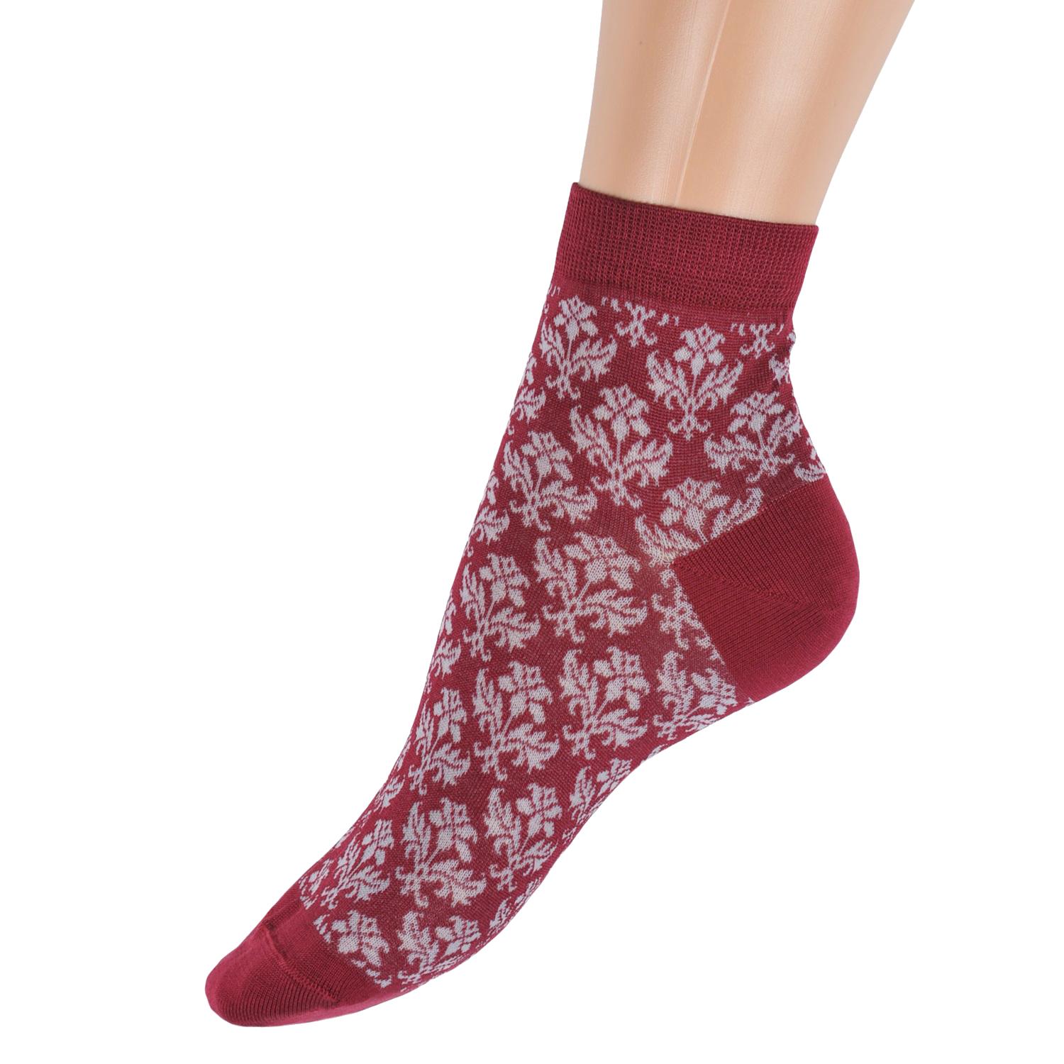 Женские носки из мерсеризованного хлопка ХОХ GM-1402, БОРДОВО-БЕЛЫЕ