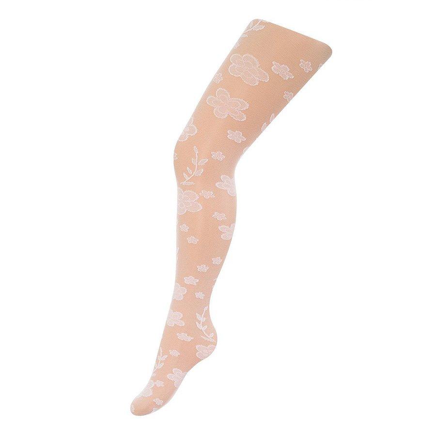 Очаровательные колготки, плотностью 30 ден для девочек. Модель имеет фактуру мелкой сетки и декорирована изысканным флористическим узором.