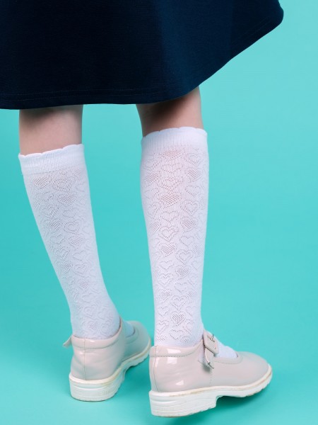 Стильные гольфы для девочек, украшенные оригинальным редким узором. Модель отличается удобной широкой резинкой, не вызывающей усталости у ребенка даже при длительном ношении гольфов.