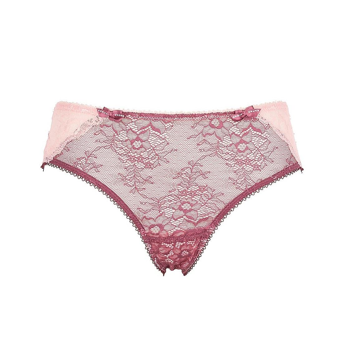 Изысканные трусы слип, сделанные из кружева. Модель выполнена в двухтонной расцветке. Трусы декорированы кокетливыми бантиками на поясе.