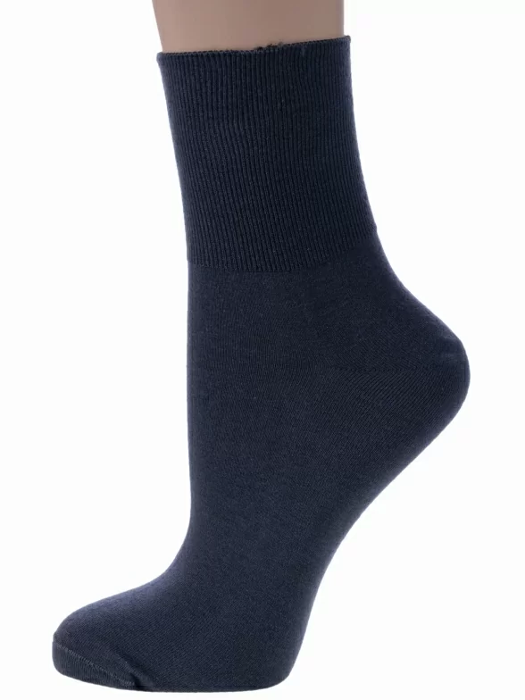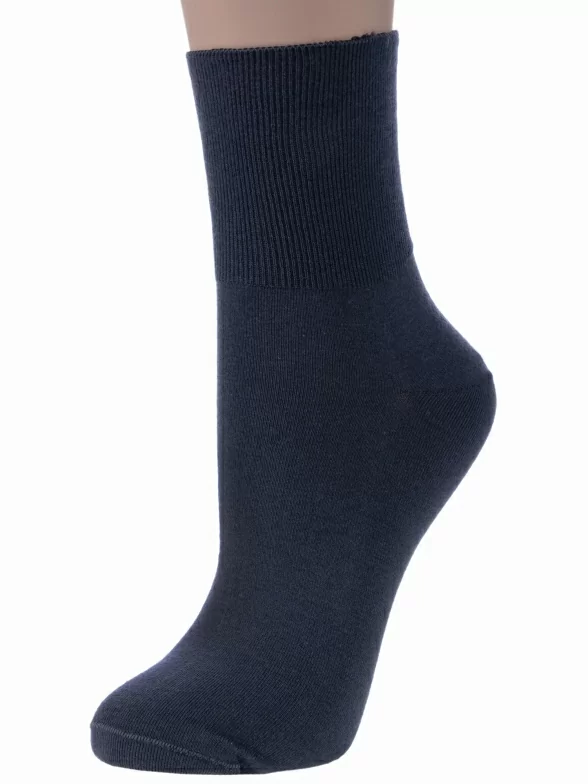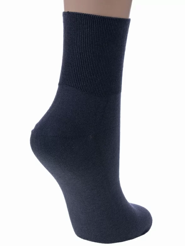 Однотонные женские носки классической длины. Их отличительная особенность – это ультравысокая резинка с распределённым давлением. Она не передавливает ноги и не дает носкам сползать. Носки очень приятны к телу за счет высокого содержания натурального хлопка.