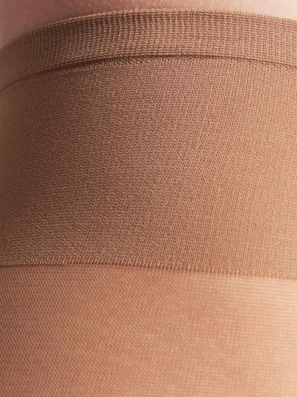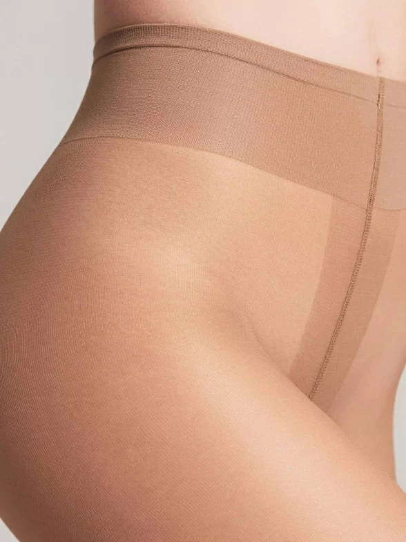 Классическая модель плотностью 20 den без шортиков, с хлопковой ластовицей, плоскими швами и уплотненным мыском; широкий пояс позволяет регулировать посадку от экстранизкой до высокой. Колготки подходят для чувствительной кожи благодаря специальной обработке полотна микрокапсулами с витамином Е, который ухаживает за кожей ног.
