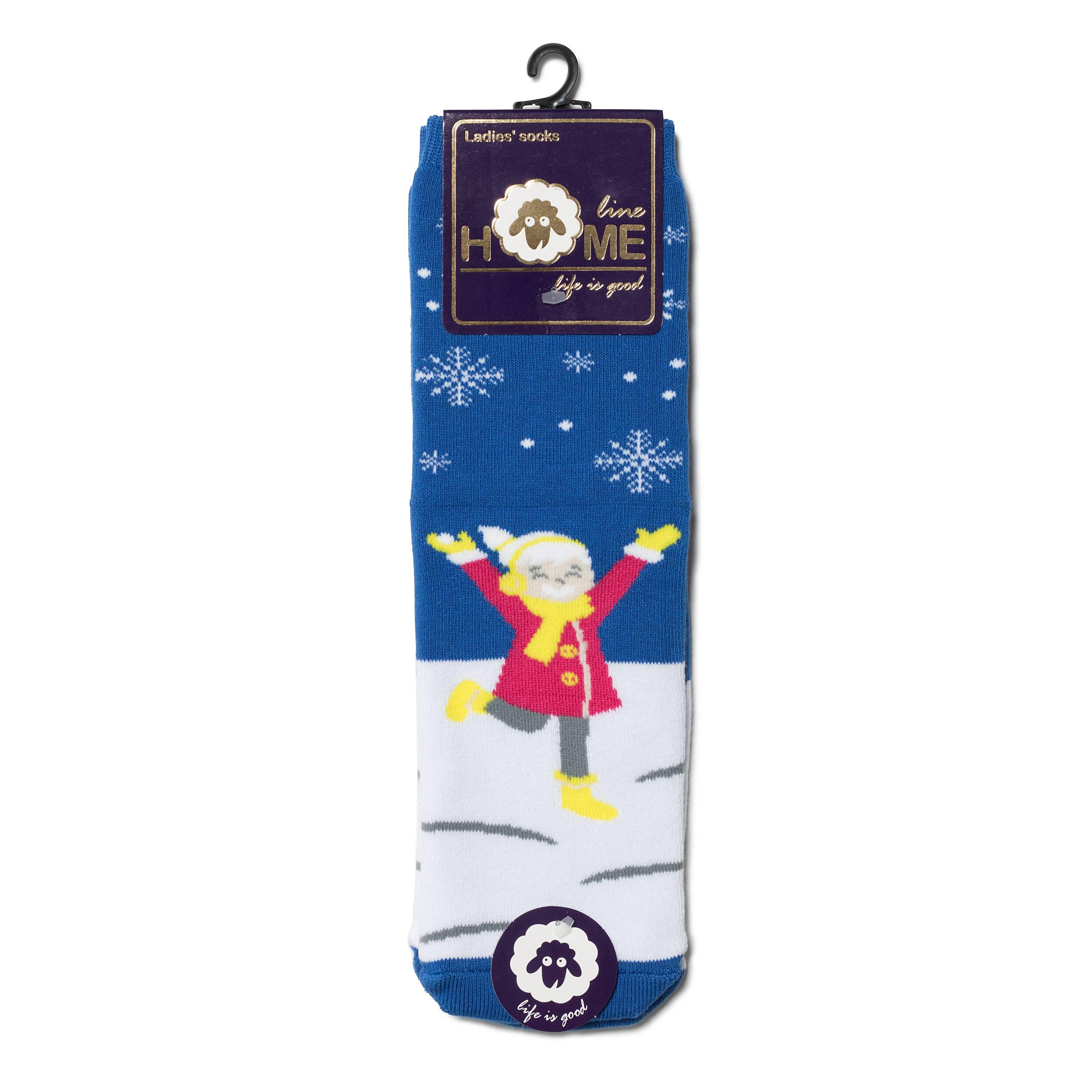 Яркие и красочные женские махровые носки. Очень мягкие и теплые. На 84% состоят из хлопка. Сохранят ноги в тепле даже в самую холодную погоду. Модель украшена милым рисунком зимней тематики.