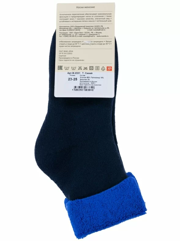 Женские махровые носки RuSocks (Орудьевский трикотаж), Ж-2331, ТЕМНО-СИНИЕ