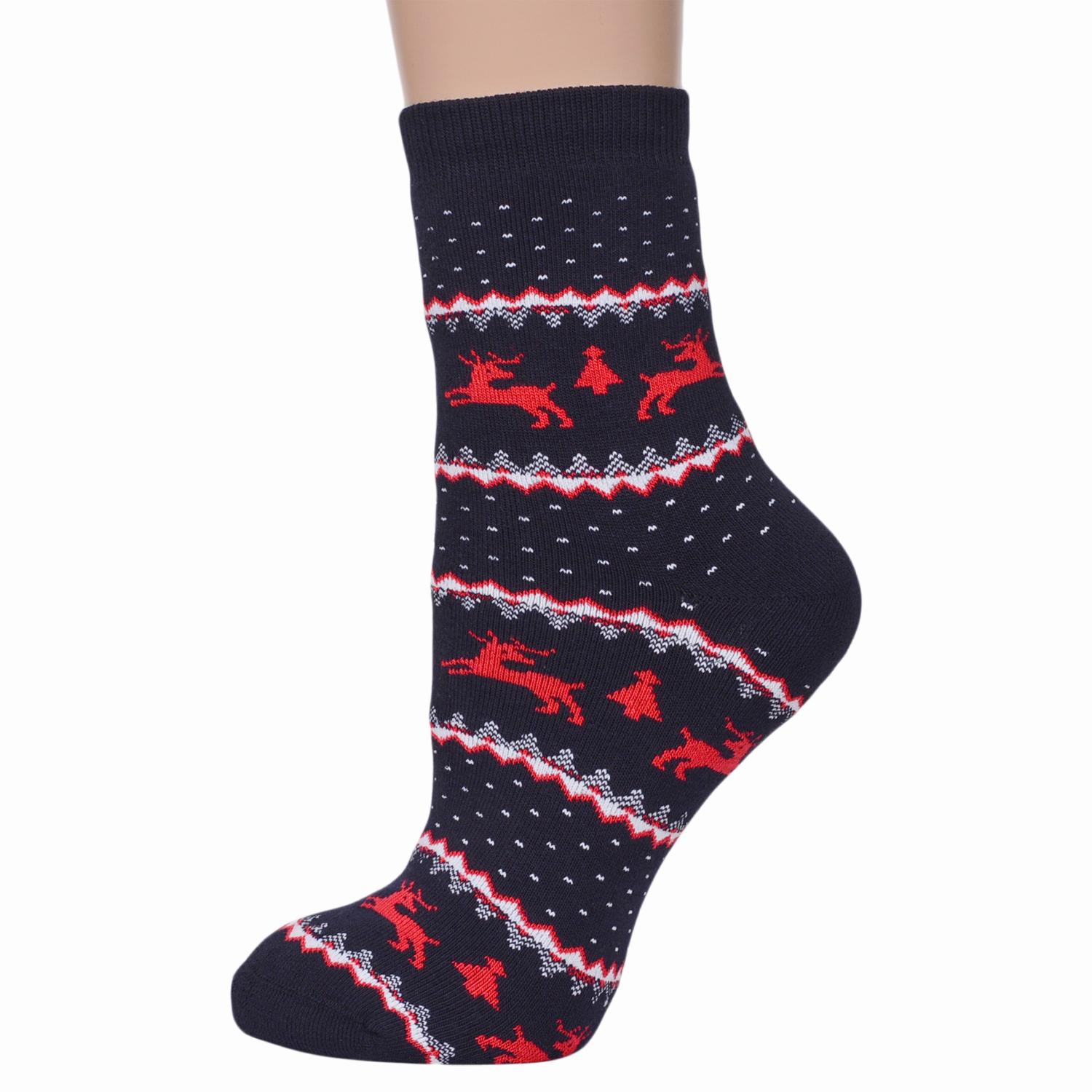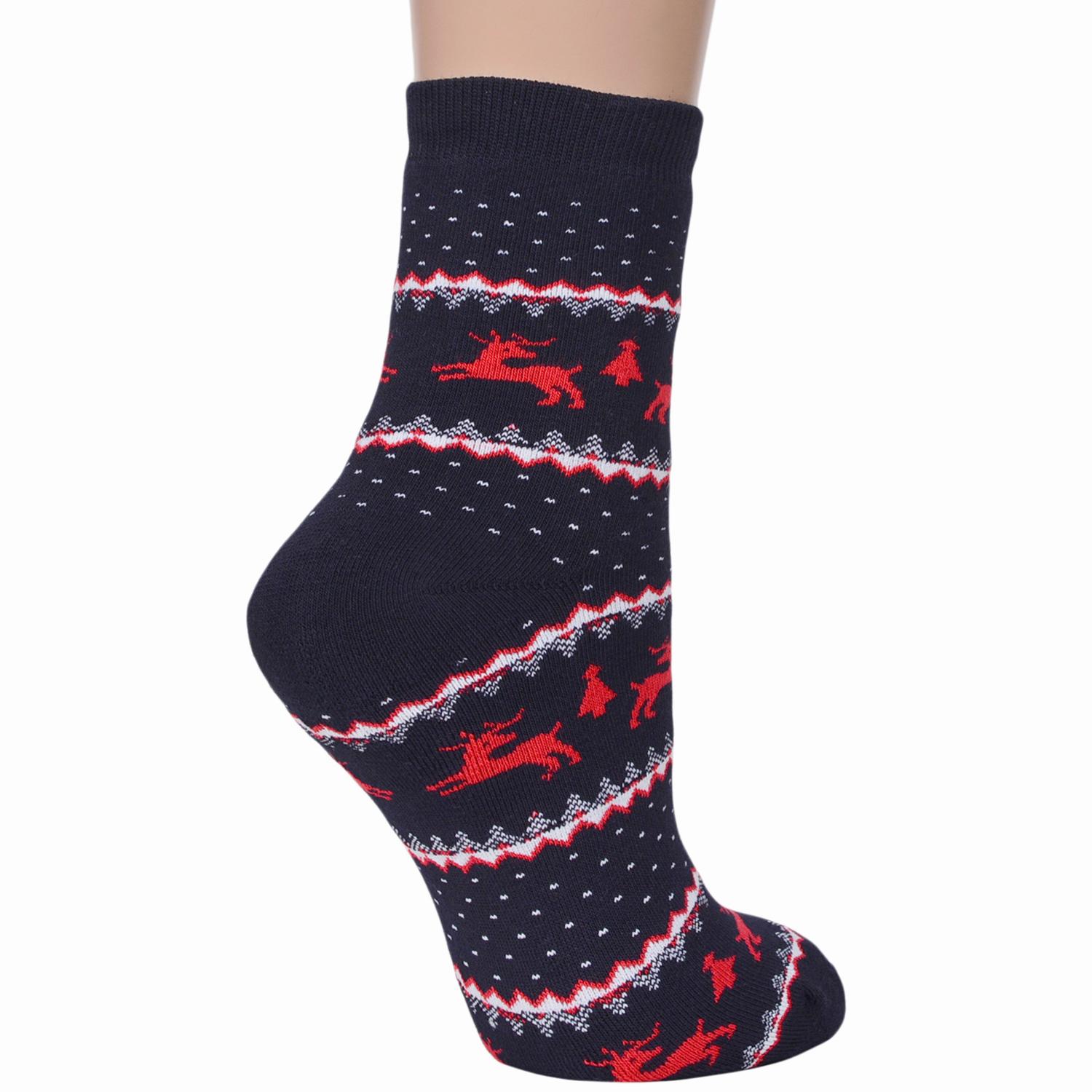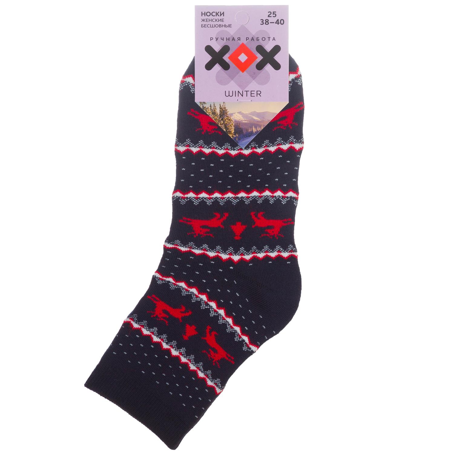 Зимние средней длины женские носки, цвет темно-синий, теплые, махровые, классические, возможно бесшовные, принт (рисунок): орнамент, норвежский жаккард, животные, с узором, крупные контрастные рисунки, состав: 80% хлопок, 18% полиамид, 2% эластан, арт. GZ-3R14. Производитель «ХОХ» Россия под брендом «Хох».