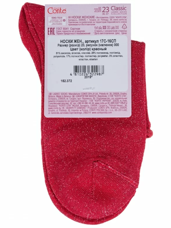 Женские носки из вискозы без резинки Conte, 17С-16СП, рис. 000, КРАСНЫЕ