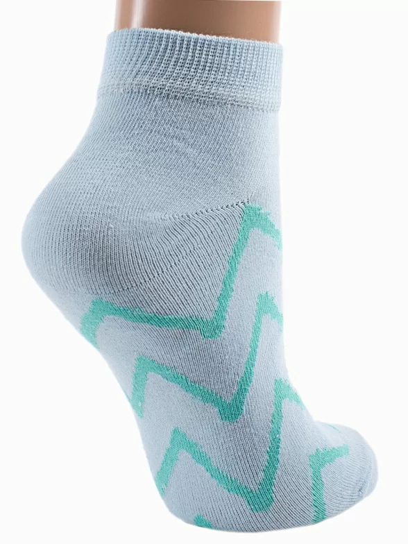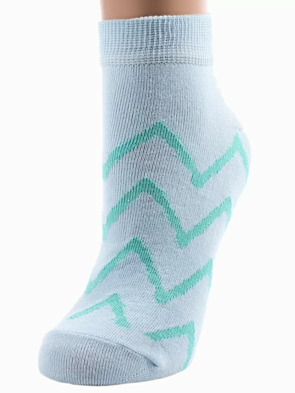 Круглогодичные короткие женские носки, цвет бирюзовый, повседневные, шов обычный (не бесшовные), принт (рисунок): зигзаг / молния, с узором, арт. LADY 2-7. Производитель «ЧЕЛНЫ ТЕКСТИЛЬ» Россия под брендом «Челны текстиль».
