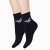 Круглогодичные укороченные женские носки, цвет черный, повседневные, возможно бесшовные, принт (рисунок): животные, бабочки / бантики, с узором, состав: 74% хлопок, 20% полиамид, 2% полипропилен, 4% эластан, арт. С-1269. Производитель «КРАСНАЯ ВЕТКА» Россия под брендом «Красная ветка».
