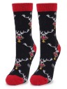 Зимние средней длины женские носки, цвет многоцветные (мультиколор)-черный, повседневные, теплые, принт (рисунок): крупные контрастные рисунки, с узором, животные, новый год, состав: 60% полиамид, 23% акрил, 7% вискоза, 5% шерсть, 3% ангора, 2% эластан, арт. ANGORA NO TERRY N37. Производитель «MARILYN» Польша под брендом «Marilyn».