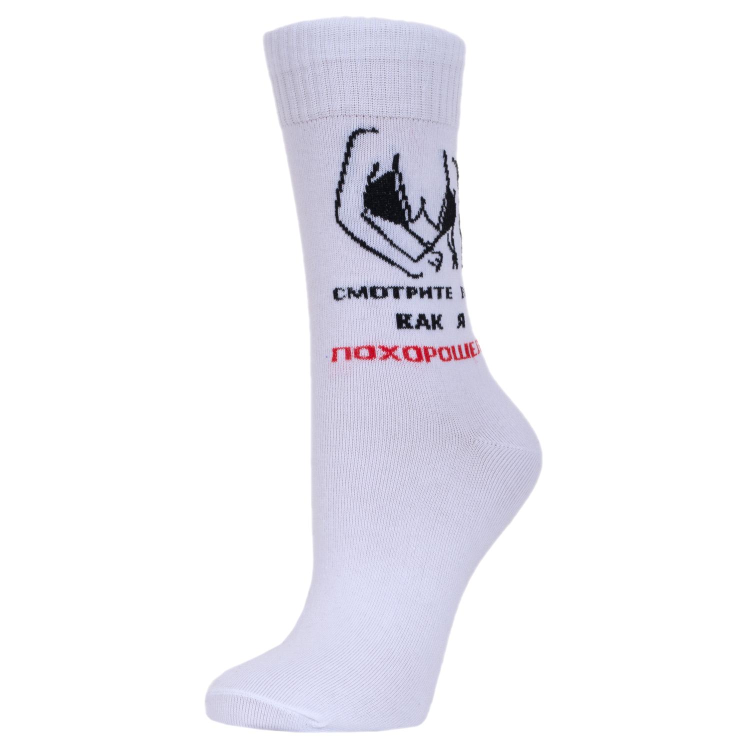 Круглогодичные средней длины женские носки, цвет белый, повседневные, шов обычный (не бесшовные), принт (рисунок): с узором, надписи, состав: 82% хлопок, 15% полиамид, 3% эластан, арт. WNM-41Э. Производитель «ИП Рыбалкин В.С., Московская область, г. Щелково» под брендом «Msclub».