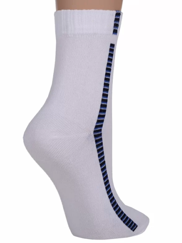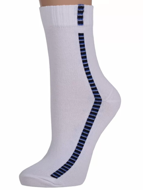 Круглогодичные средней длины женские носки, цвет белый, спортивные, шов обычный (не бесшовные), принт (рисунок): спортивные, с узором, состав: 82% хлопок, 15% полиамид, 3% эластан, арт. ЖДС-02. Производитель «PALAMA» Россия под брендом «Palama».