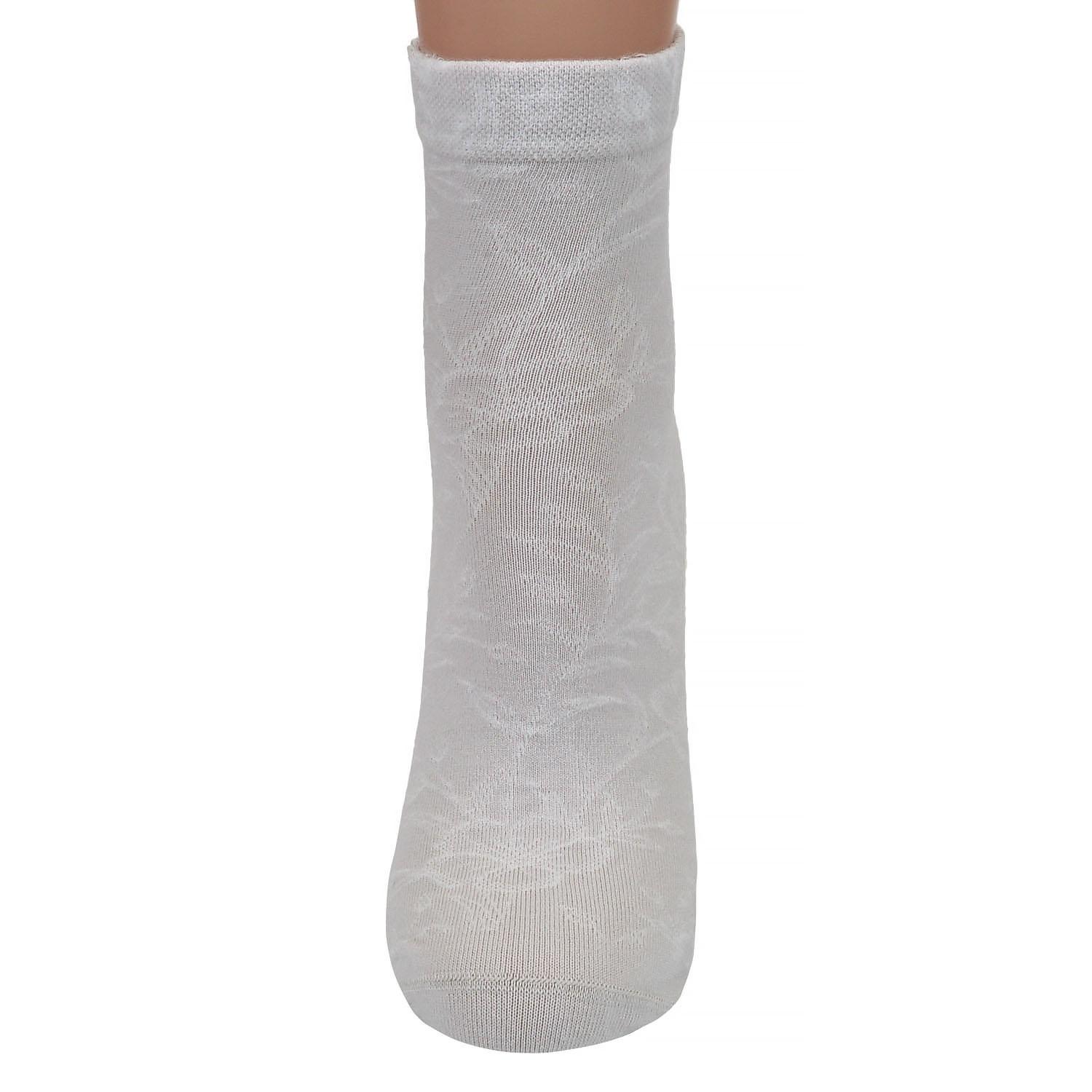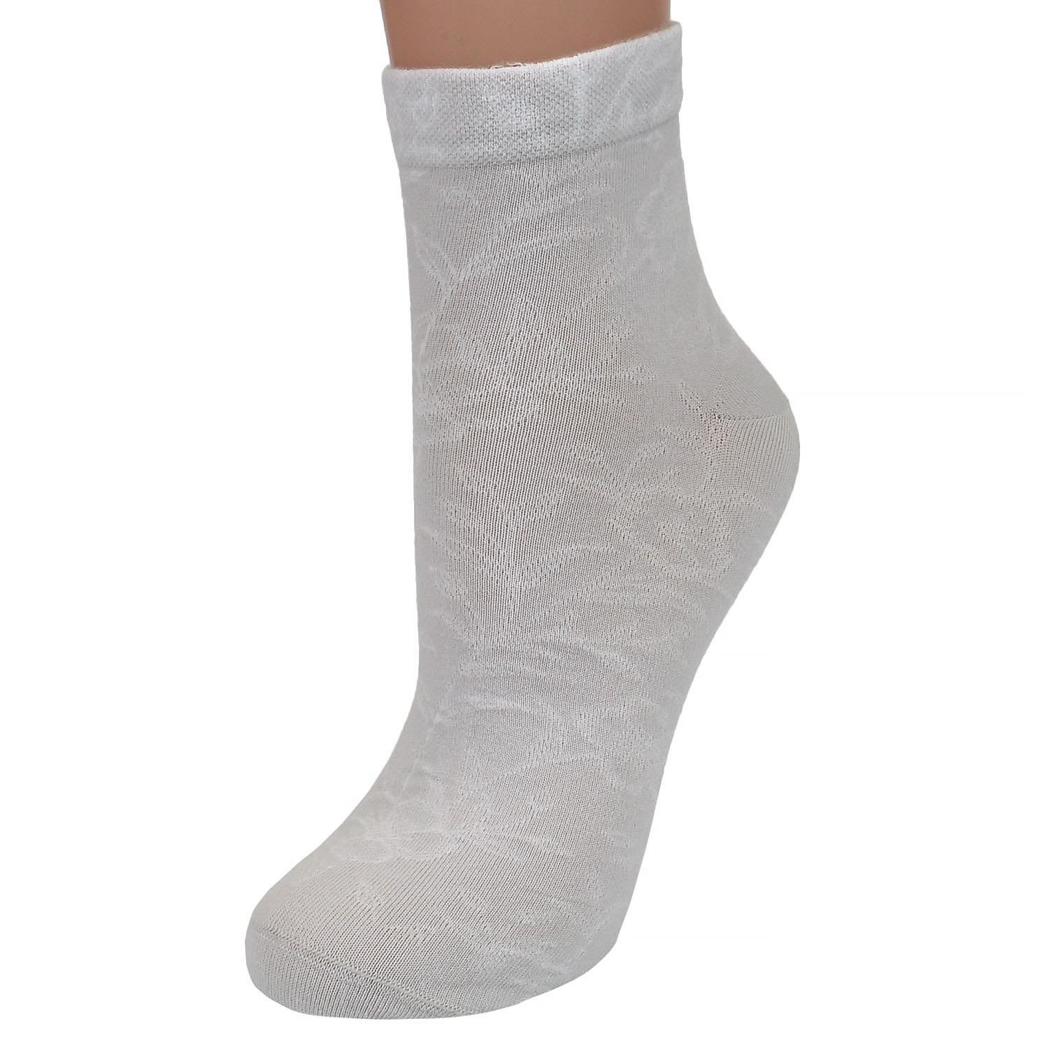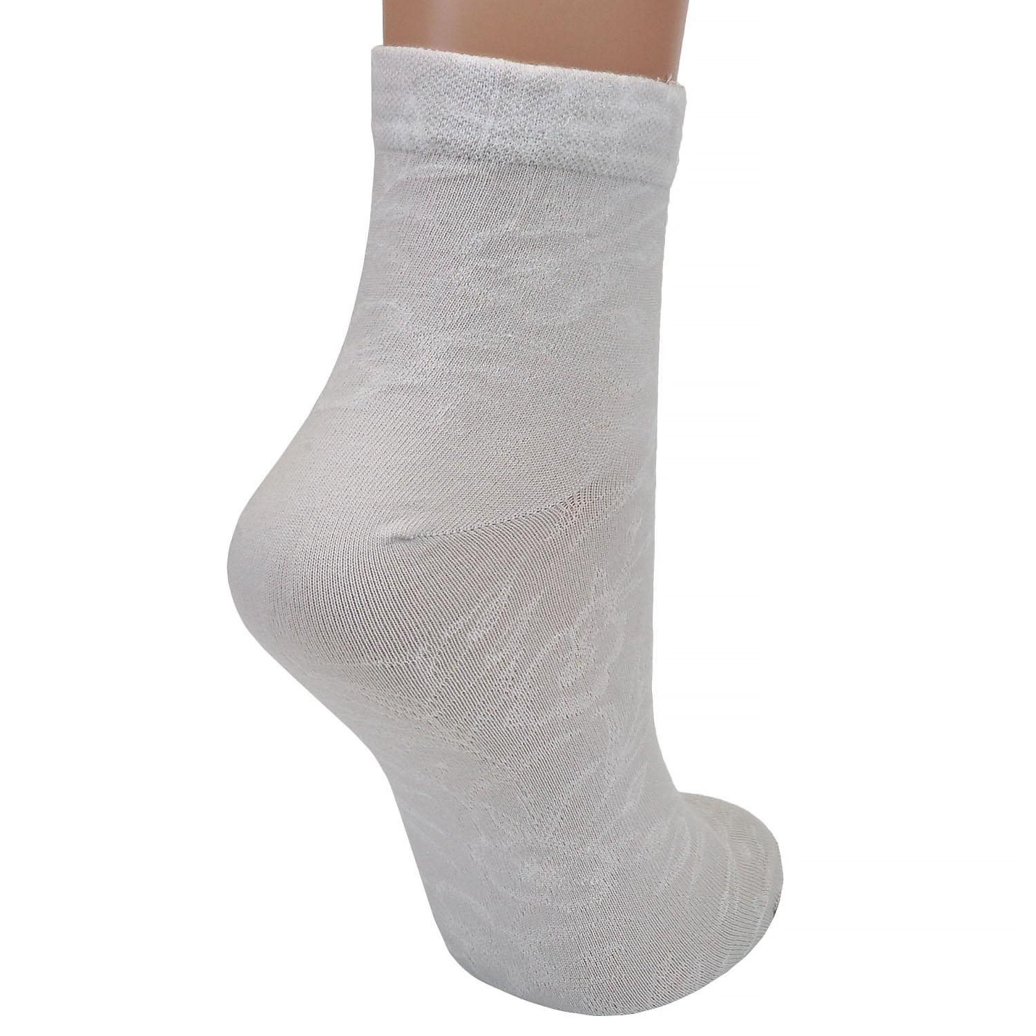 Стильные женские носочки слегка укороченного фасона. Модель отличается удобными мягкими манжетами и декорирована изысканным ненавязчивым узором.