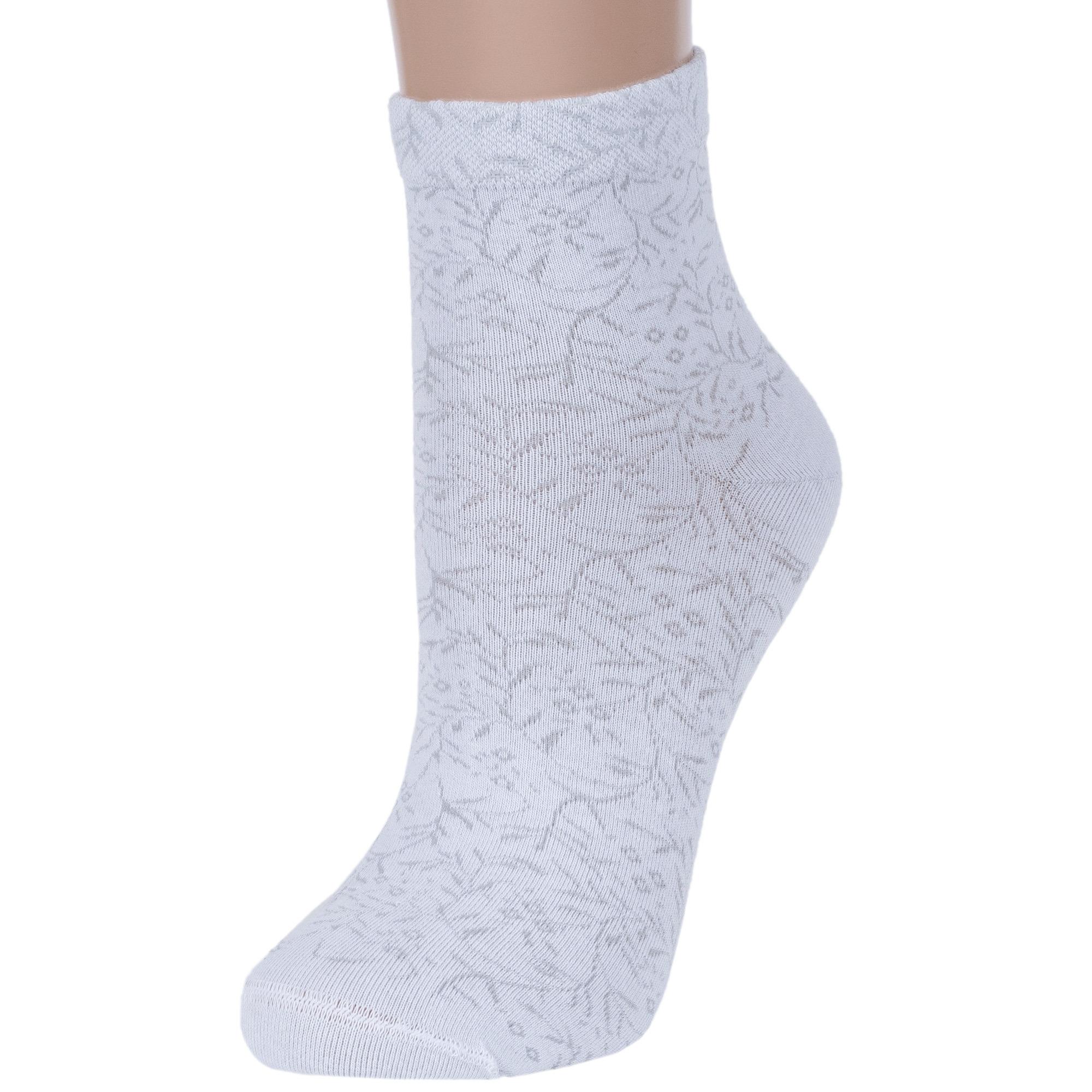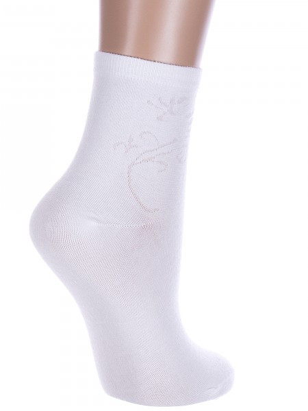 Женские носки RuSocks (Орудьевский трикотаж) Ж-1527, БЕЛЫЕ, рис. Веточки