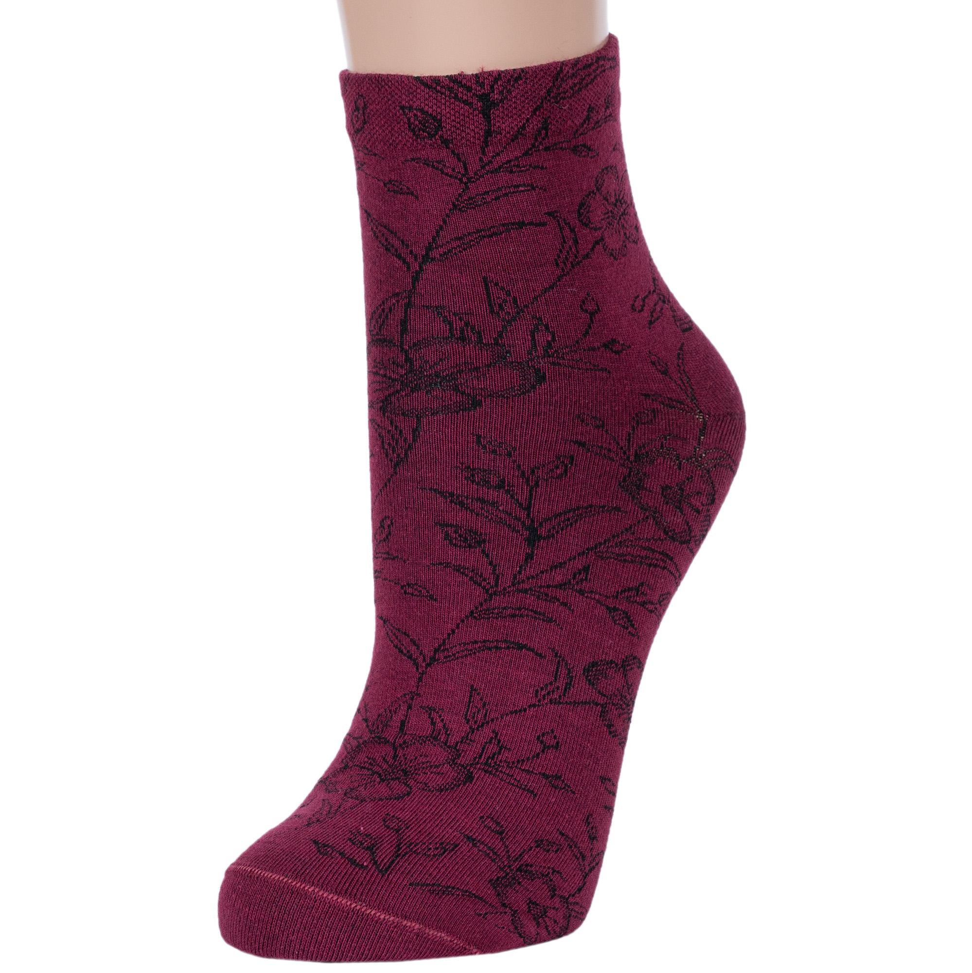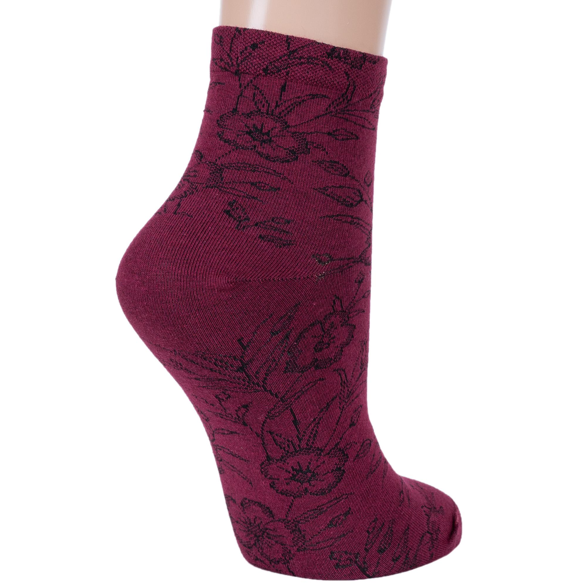 Женские носки RuSocks (Орудьевский трикотаж) Ж-1527, БОРДОВЫЕ, рис. Цветы 2